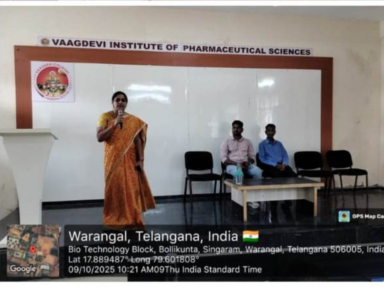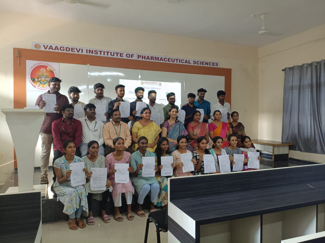 Vaagdevi Institute of Pharmaceutical Sciences, established in 2006, is a premier institution dedicated to excellence in pharmaceutical education and research. The institute offers B. Pharm., M. Pharm., and Pharm. D programs, designed to meet the dynamic needs of the healthcare sector where pharmacists play a crucial role. Accredited by NAAC, affiliated to Kakatiya University and approved by the Pharmacy Council of India (PCI), provides a strong academic foundation supported by innovation and professional ethics. The instituteβs focus areas include start-up incubation and business acceleration, innovation and product development, research commercialization, Industry collaboration and entrepreneurship development. With experienced faculty, modern infrastructure, advanced laboratories, rich libraries and strong industry linkages, Vaagdevi Institute of Pharmaceutical Sciences ensures academic excellence, research advancement and successful career outcomes. It is an institution where knowledge is nurtured, innovation is encouraged and achievement is recognized.